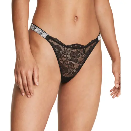 Ці мереживні трусики – справжня розкіш для вашого гардероба білизни. В чорному кольорі з високим вирізом, блискучими ремінцями та логотипом VS із блискучим покриттям вони поєднують чарівність та стрункість.