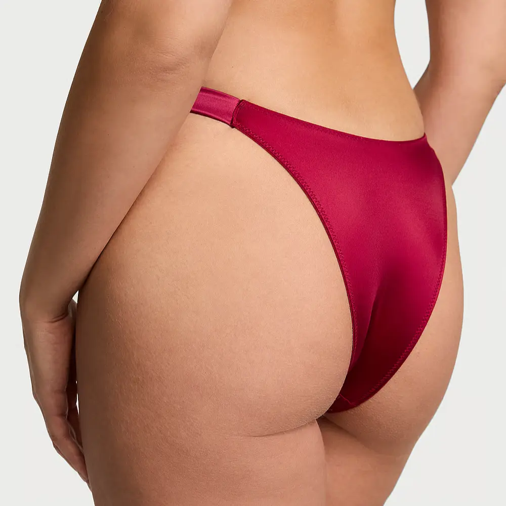 Ця спокуслива модель трусиків має елегантний високий виріз на стегнах, що візуально подовжує ноги, та прикрашена фірмовими сяючими бретелями з монограмним логотипом VS, що додає розкішного блиску. Низька посадка підкреслює лінію талії. Сяючі бретелі з монограмним логотипом, інкрустовані стразами, створюють ефектний акцент. Насичений червоний колір додає образу пристрасті та впевненості. Мінімальне покриття ззаду підкреслює спокусливість образу. Натуральна бавовняна ластка забезпечує комфорт протягом усього дня. Крім того, частина матеріалів виготовлена з переробленої сировини, що робить їх більш екологічним вибором.