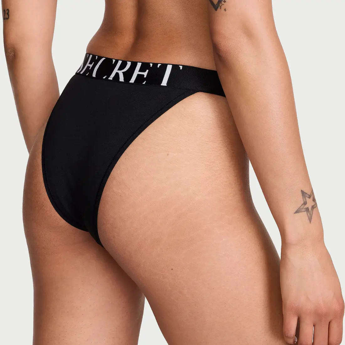 Головна особливість моделі — новий еластичний пояс із «вибуховим» збільшеним логотипом Victoria’s Secret. Він надзвичайно м’який, чудово тягнеться та додає образу зухвалого акценту. Трусики виготовлені з високоякісної суміші американської бавовни та модалу, що робить їх неймовірно приємними до тіла та дозволяє шкірі «дихати» протягом усього дня.