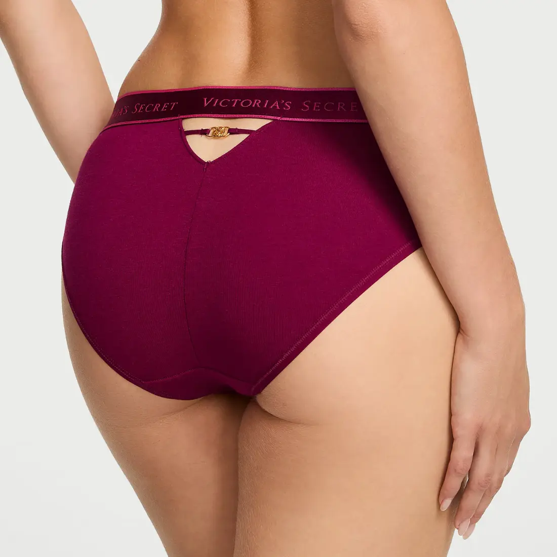 Модель має середню посадку, що забезпечує ідеальну посадку на талії та комфорт під час руху. Повне покриття ззаду дарує відчуття впевненості та дозволяє білизні залишатися зручною протягом усього дня. Еластичний пояс із фірмовим логотипом Victoria’s Secret м’яко фіксує хіпстери на тілі й підкреслює брендовану естетику.