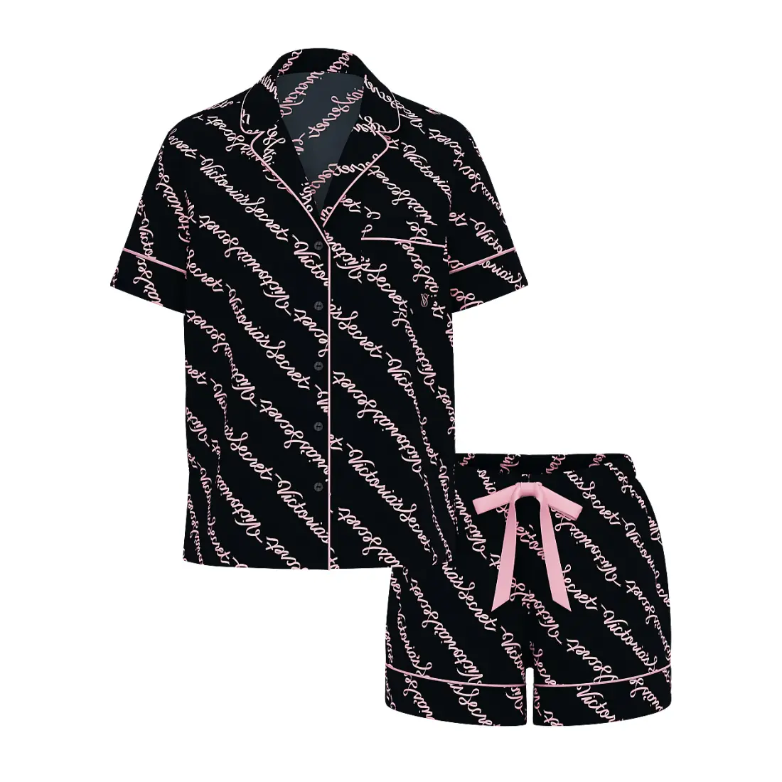 Ця піжама з м’якої бавовни та ультрамодального матеріалу — ідеальний вибір для прохолодних вечорів. Легка та приємна на дотик тканина забезпечує комфорт протягом усього сезону. Верх із ґудзиками прикрашений вишитим логотипом Victoria’s Secret на кишені, що додає елегантності.