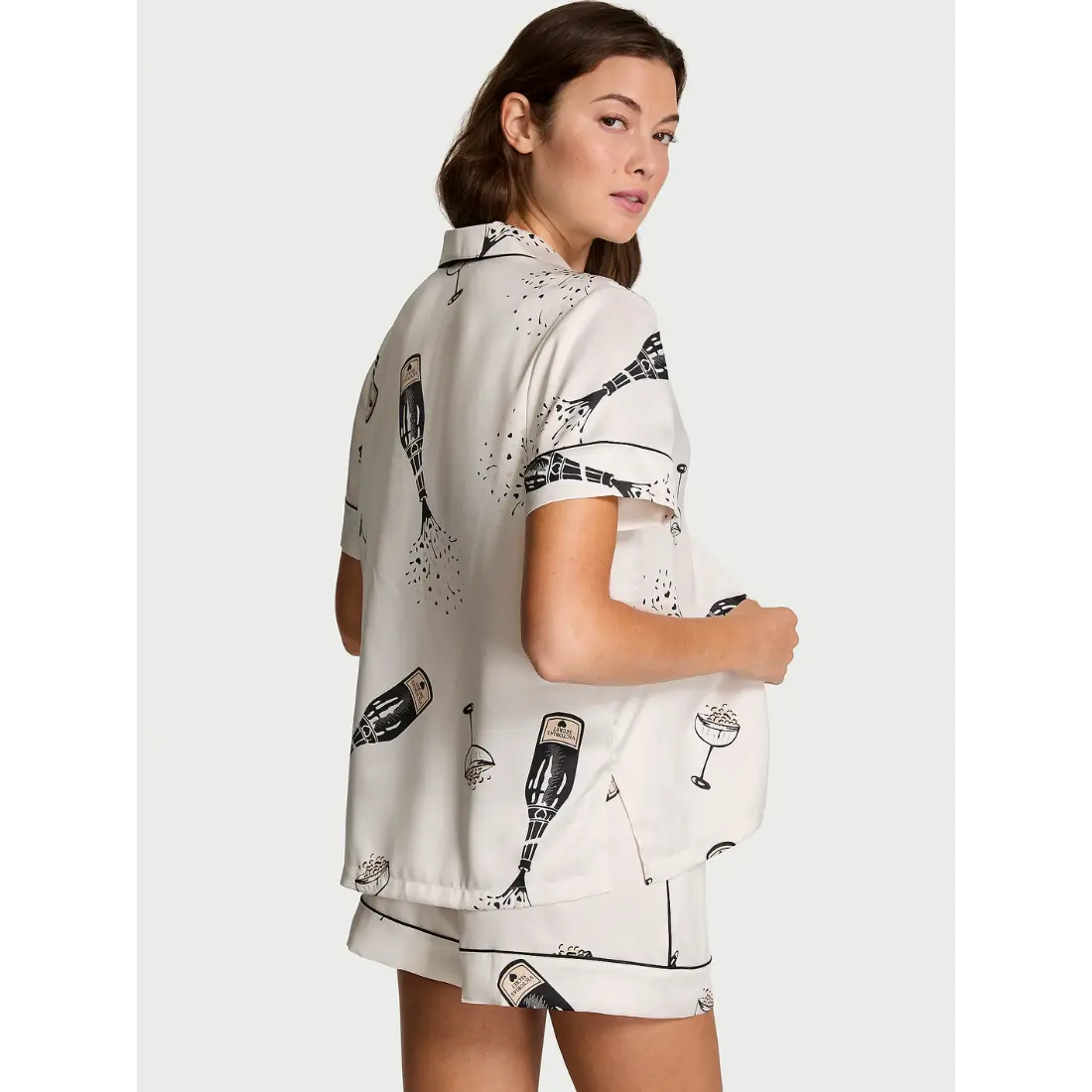 Сатинова піжама Victoria’s Secret Champagne Bottles шорти та сорочка з коротким рукавом