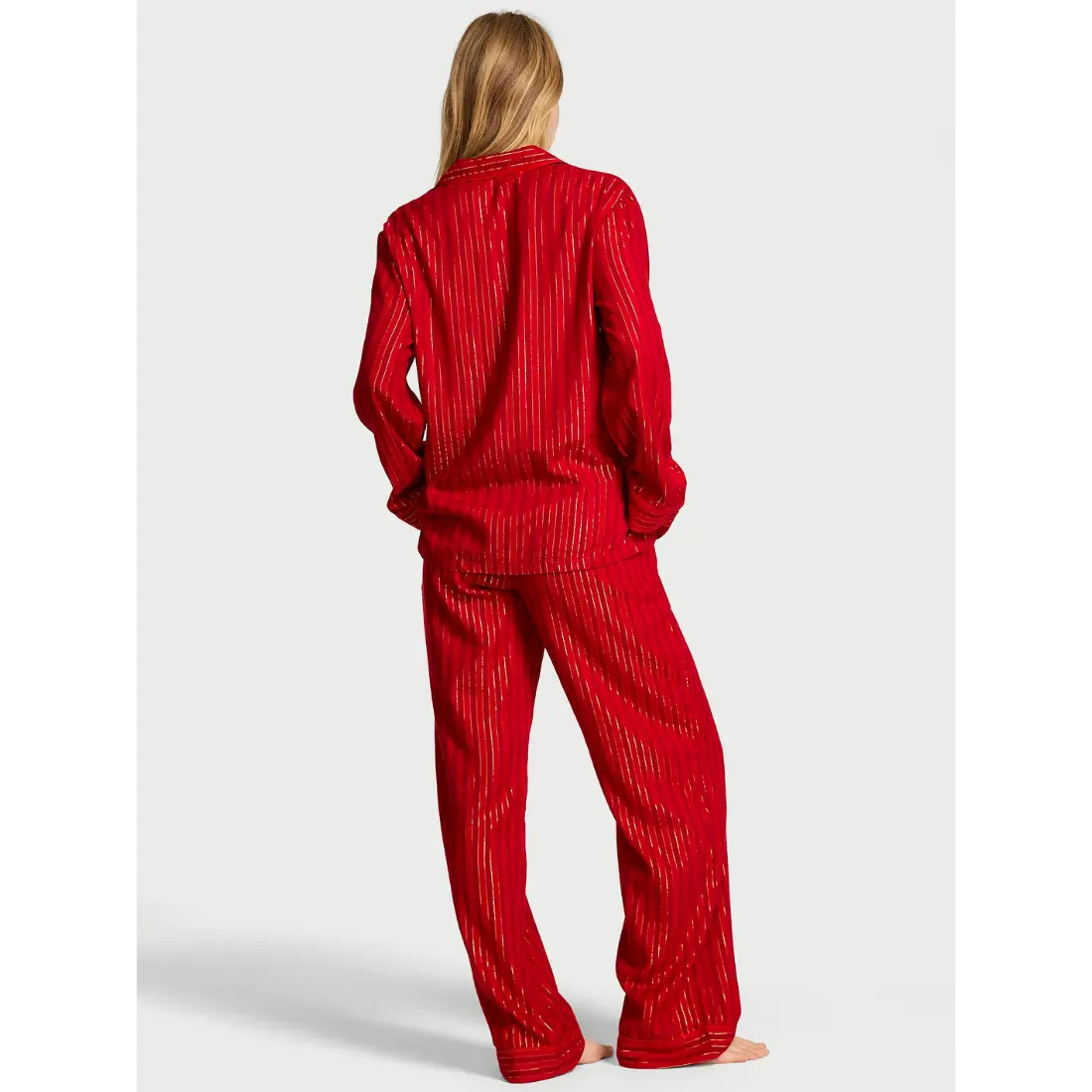 Де купити фланелеву піжаму Вікторії Сікрет Red Lacquer Stripes зі штанами