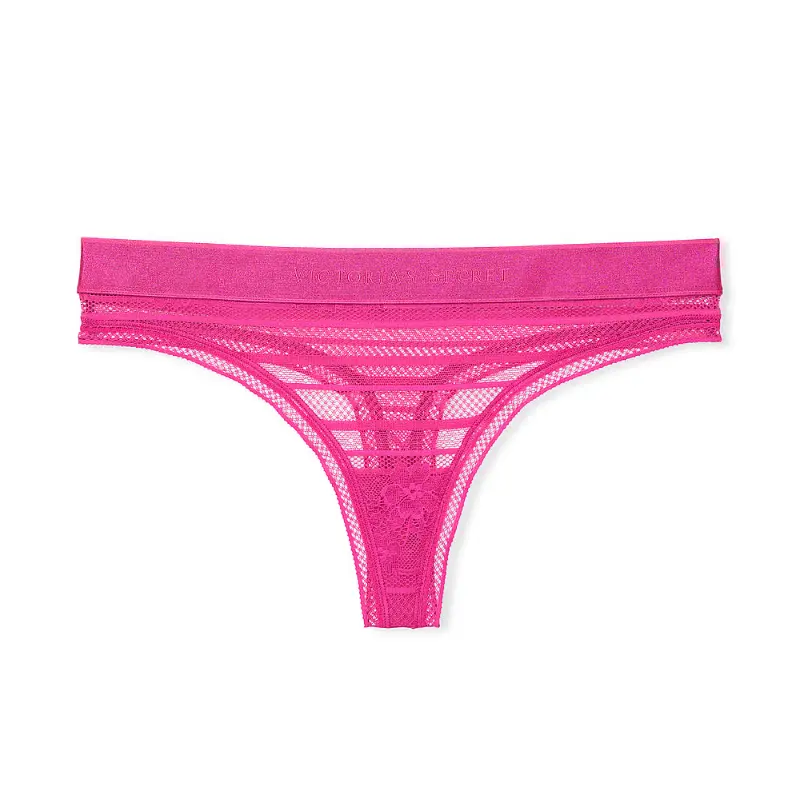Ці стрінги Victoria’s Secret поєднують у собі ніжне мереживо з квітковим мотивом та фірмовий пояс із логотипом. Вони дарують комфорт і підкреслюють вашу жіночність, додаючи нотку розкоші у ваш повсякденний гардероб.
