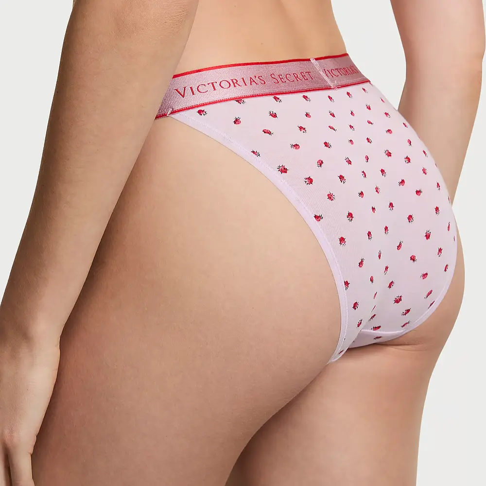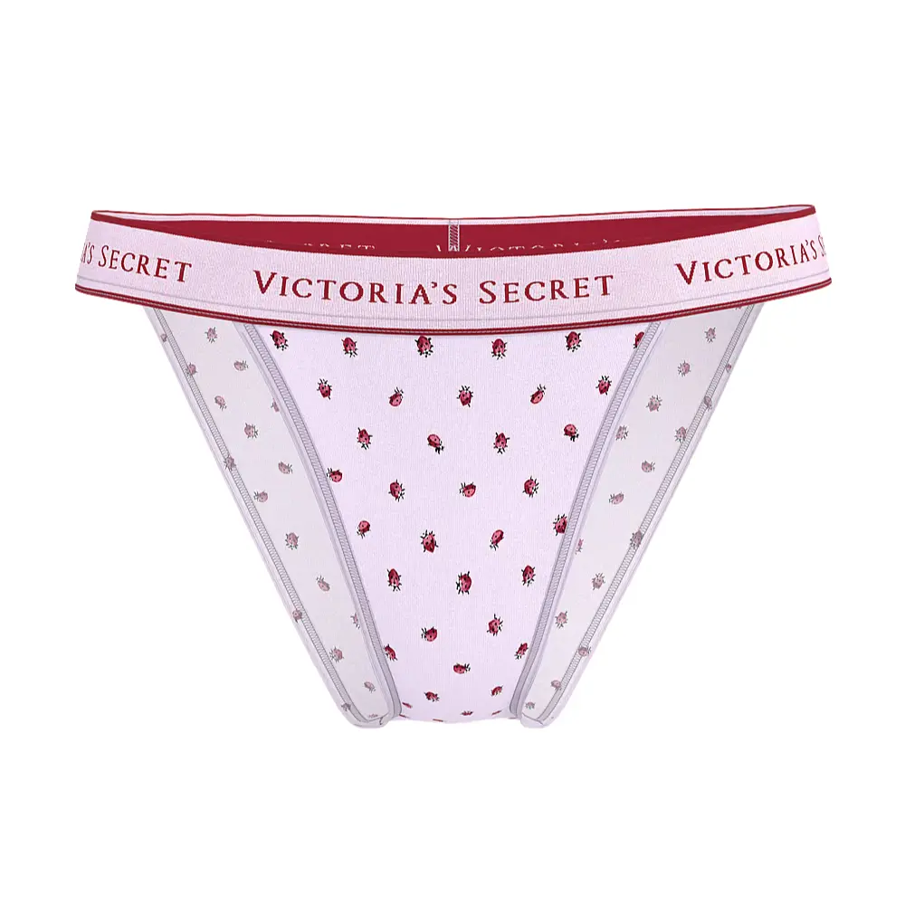 - Особливості: Тонка еластична резинка з логотипом, мінімальне покриття ззаду, принти